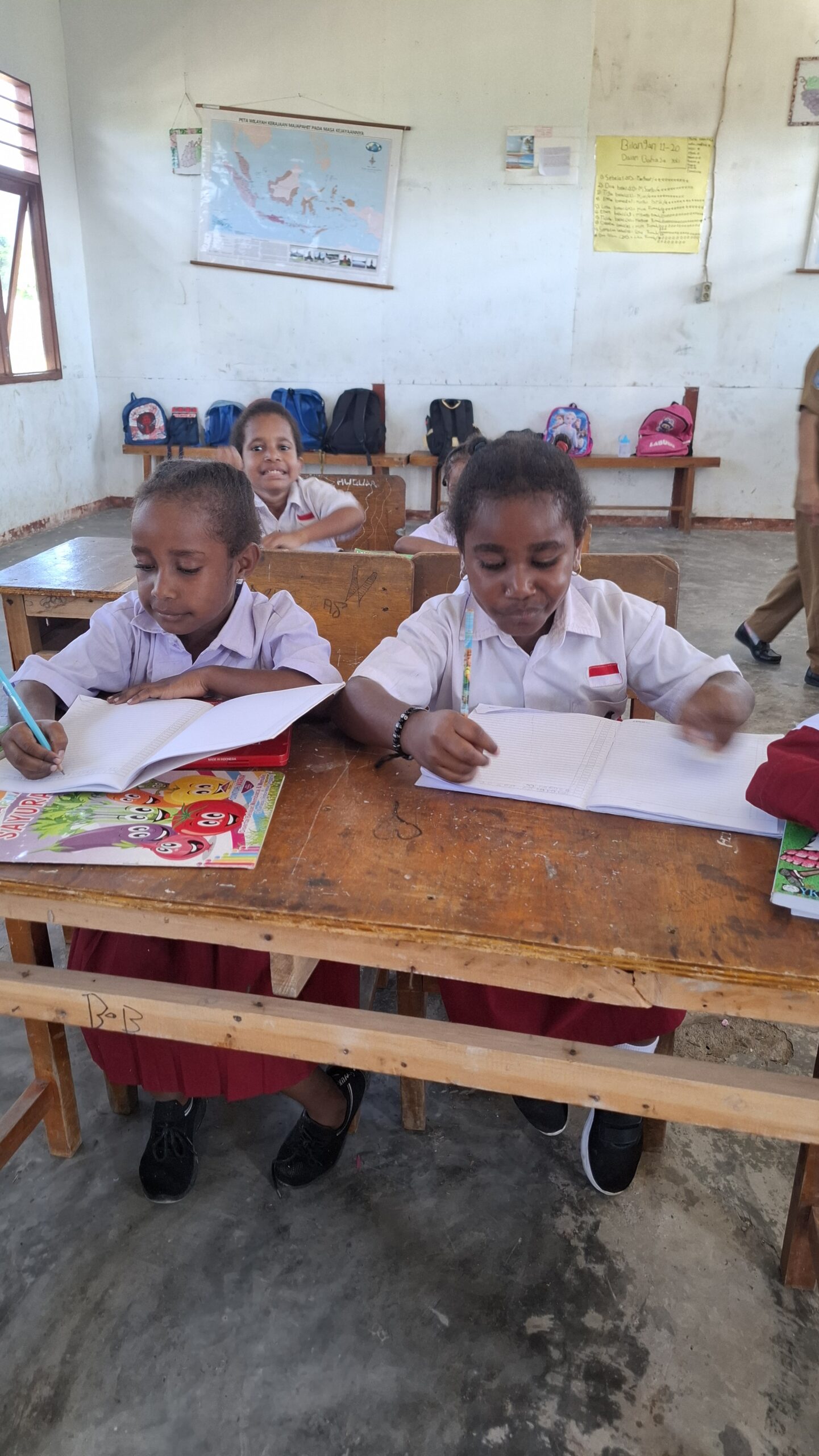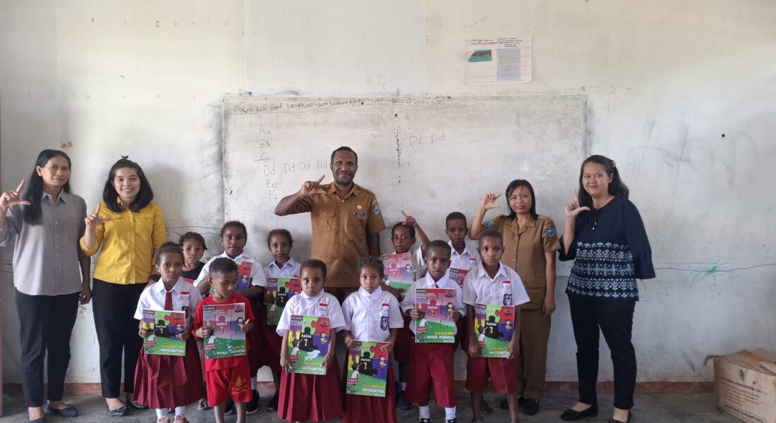 Siswa kelas 1 menerima Buku Paket Kontekstual Papua (BPKP), Matematika dan Bahasa Indonesia